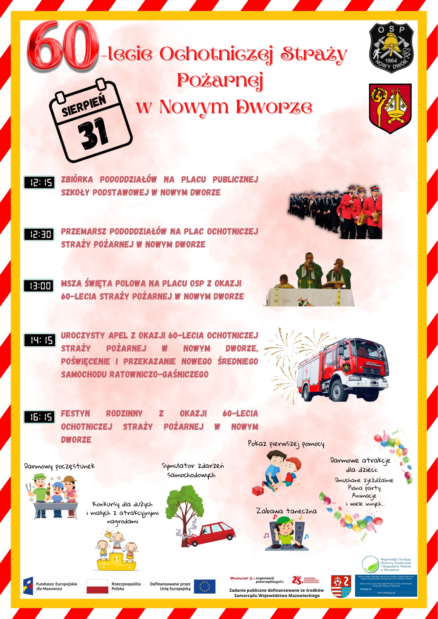 Festyn rodzinny z okazji 60-lecia Ochotniczej Straży Pożarnej w Nowym Dworze jako zadanie publiczne dofinansowane zostało ze środków Samorządu Województwa Mazowieckiego.