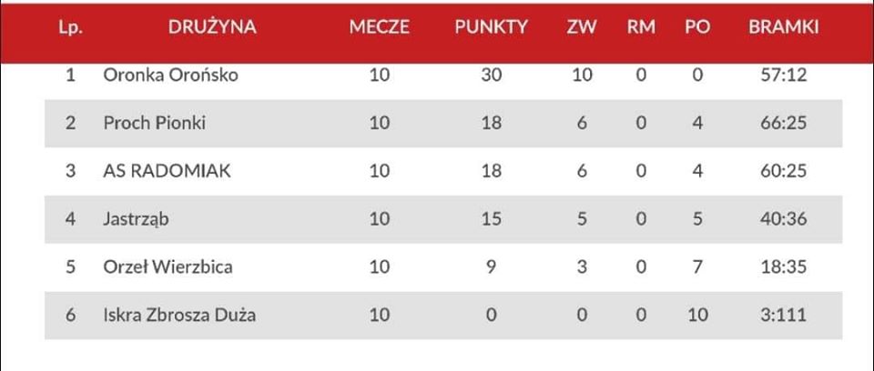 Podopieczni trenera Kamila Śledzia awans zapewnili sobie w pięknym stylu z przewagą 12 punktów nad drugim w tabeli Prochem Pionki. Zespół z Orońska wygrał wszystkie dziesięć spotkań i zakończył rundę z bilansem bramkowym 57:12.
