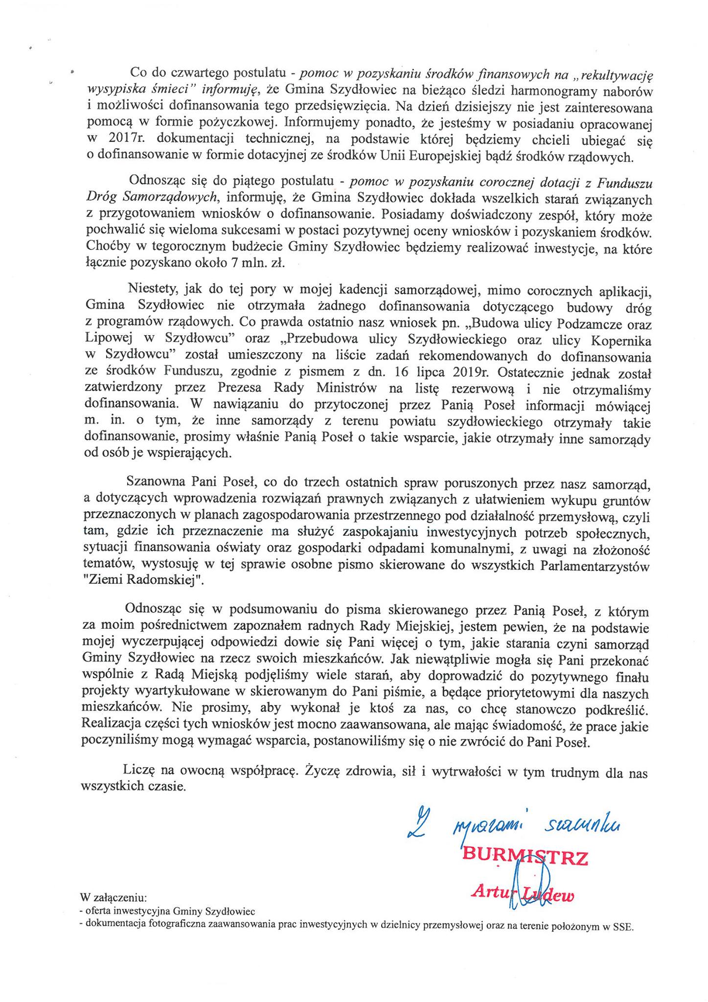 Historia tej korespondencji trochę już trwa. Rozpoczęli ją radni miejscy i burmistrz Szydłowca. Następnie odpowiedzi tylko do burmistrza Szydłowca udzieliła poseł Agnieszka Górska. Dziś burmistrz Artur Ludew na fb Urzędu Miejskiego opublikował odpowiedź na list poseł Górskiej.
