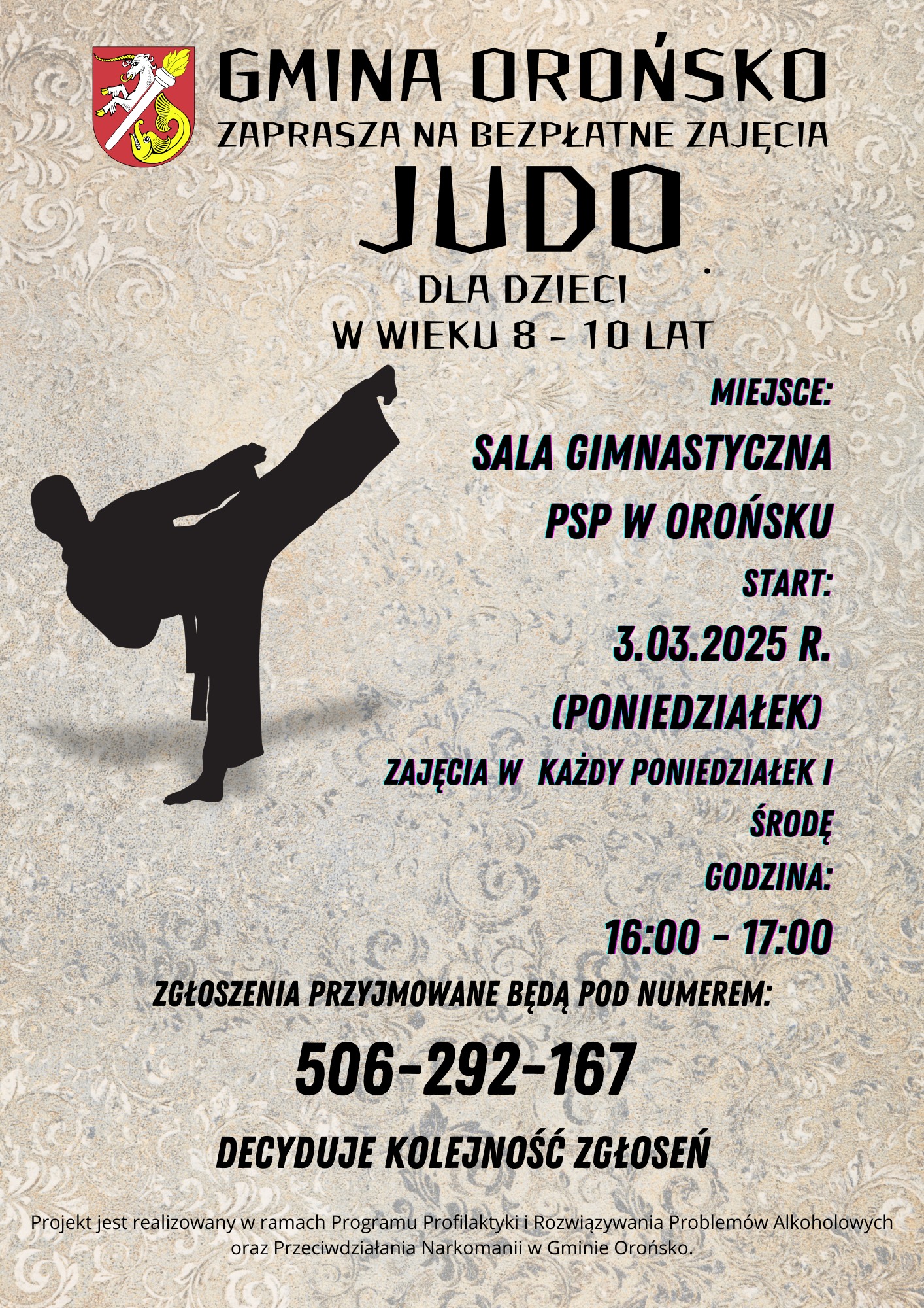 Wójt Gminy Orońsko Pan Sylwester Różycki zaprasza dzieci klas I – III z terenu Gminy Orońsko do udziału w zajęciach pozalekcyjnych z JUDO w ramach projektu sportowego „Otwarte Hale”, który promuje zdrowy i aktywny tryb życia.