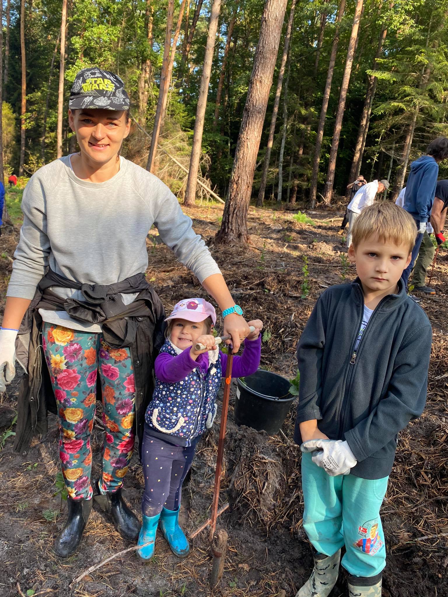 Razem ze swoimi pociechami wybrali się dziś do lasu, aby posadzić las.