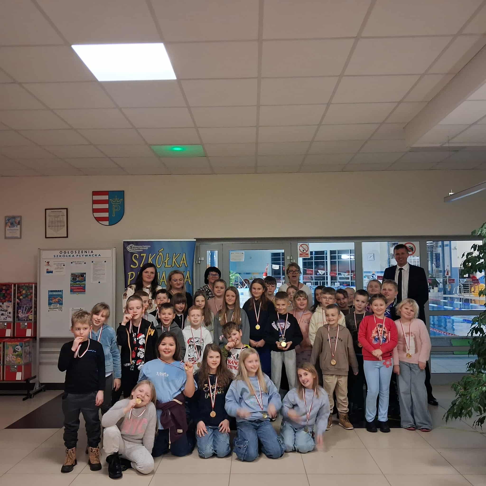 Podczas podsumowania projektu Wójt Gminy Orońsko, Sylwester Różycki, wręczył wszystkim uczestnikom pamiątkowe medale, dziękując za zaangażowanie i wysiłek włożony w naukę pływania.