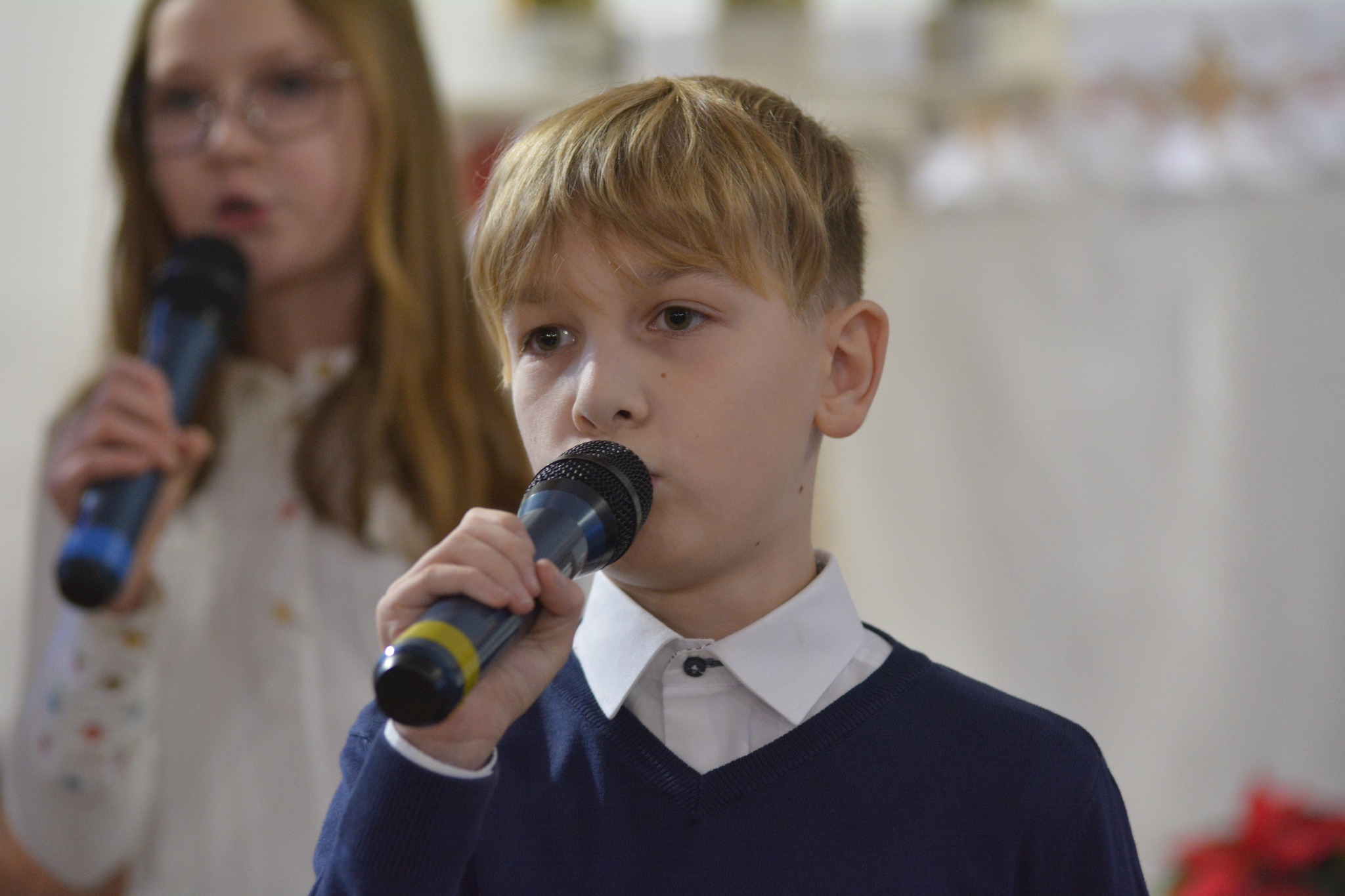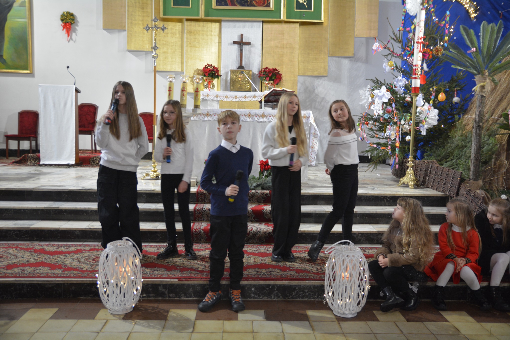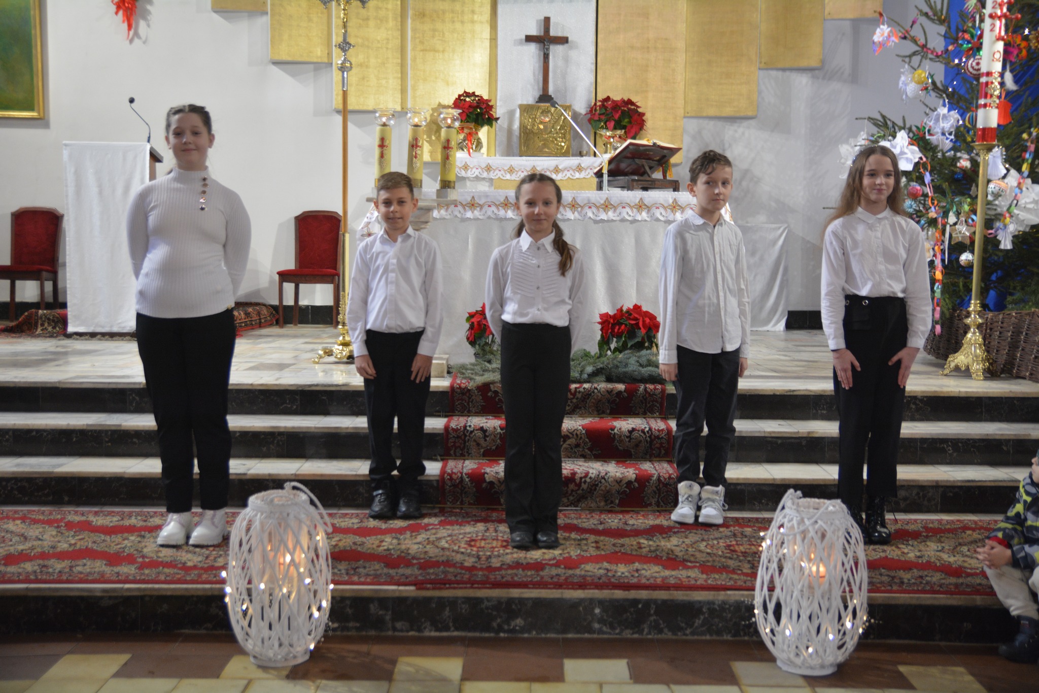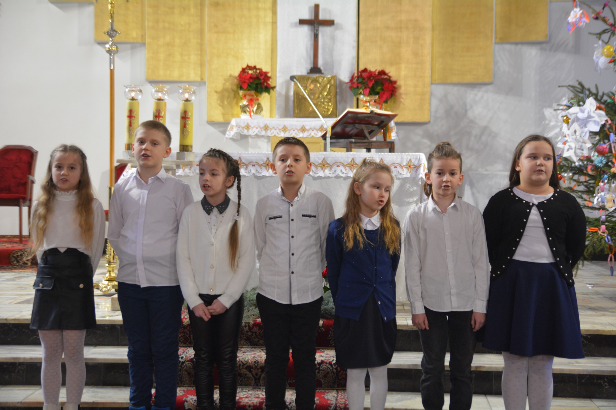 • PSP w Mirów – kolędę pt. ,,Gore gwiazda Jezusowi” pod opieką pani Magdaleny Ciałek i pani Sylwii Lech wykonali: Oliwier Masiarz, Amelia Minda i Lena Pytoń.