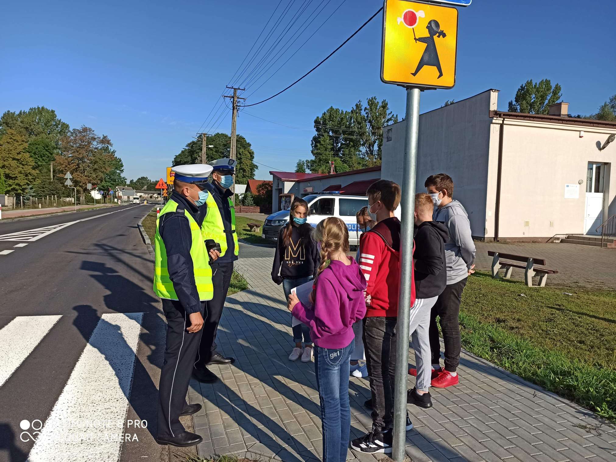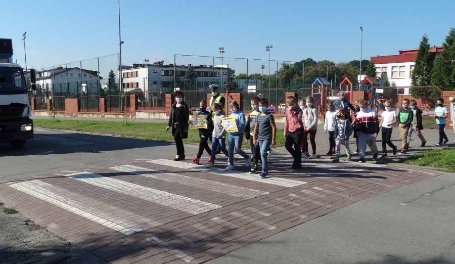 Uczniowie wysłuchali przypomnienia zasad bezpiecznego poruszania się po drogach, które omówili policjanci, a następnie wspólnie z nauczycielami i policjantami w rejonie przejścia dla pieszych przypominali kierowcom o zasadach bezpieczeństwa, jednocześnie prezentując plakaty z hasłami kampanii.
