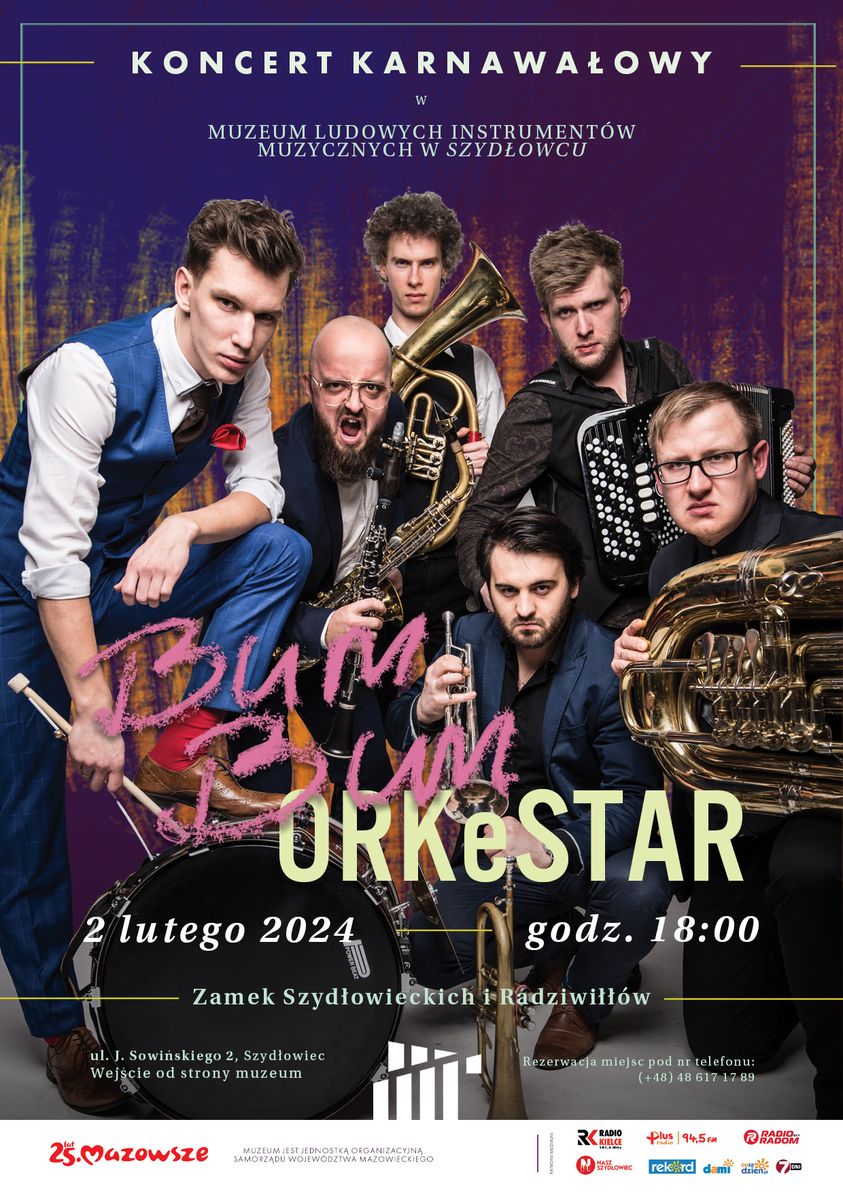 2 lutego w piątek o godzinie 18.00 odbędzie się koncert karnawałowy w Muzeum Ludowych Instrumentów Muzycznych w Szydłowcu. Wystąpi zespół BUM BUM ORKeSTAR