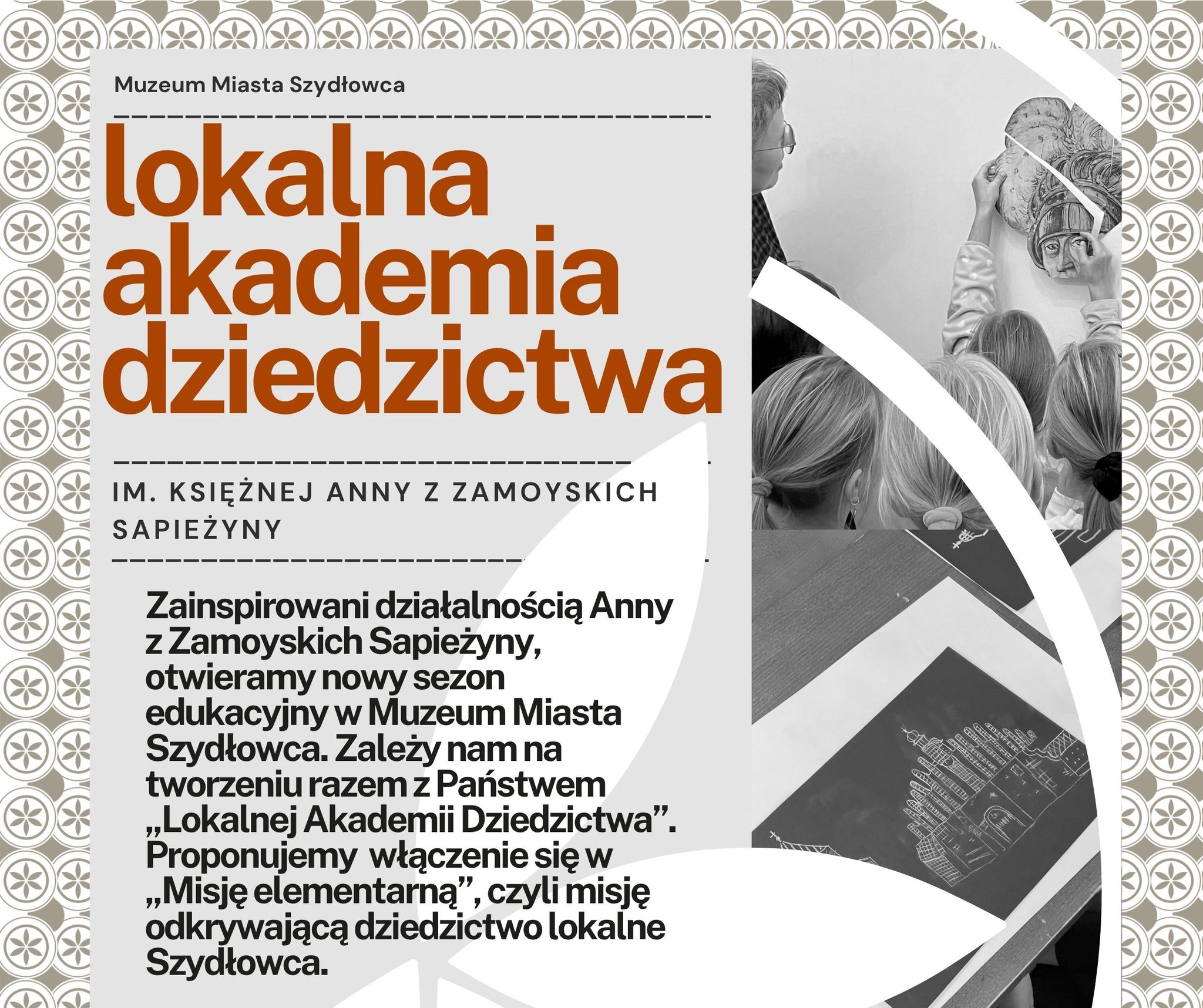 Muzeum Miasta Szydłowca zainspirowane działalnością Anny z Zamoyskich Sapieżyny, otwiera nowy sezon edukacyjny. Organizatorom zależy na tworzeniu razem z mieszkańcami „𝐋𝐨𝐤𝐚𝐥𝐧𝐞𝐣 𝐀𝐤𝐚𝐝𝐞𝐦𝐢𝐢 𝐃𝐳𝐢𝐞𝐝𝐳𝐢𝐜𝐭𝐰𝐚”. Zapraszamy do włączenia się w „Misję elementarną”, czyli misję odkrywającą dziedzictwo lokalne Szydłowca.Poniżej informacja od Muzeum Miasta Szydłowca: