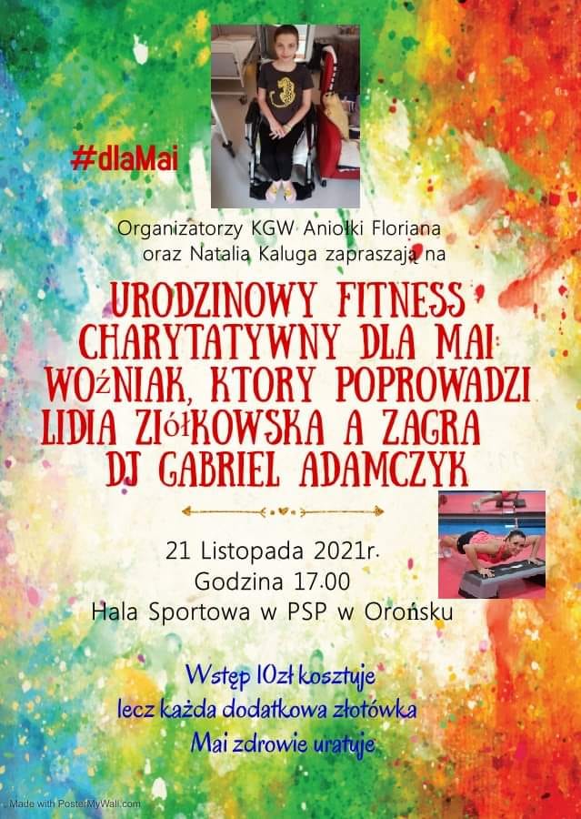 Już 21 listopada o godzinie 17.00 w hali sportowej Publicznej Szkoły Podstawowej w Orońsku rozpocznie się „Urodzinowy Fitness Charytatywny dla Mai”.