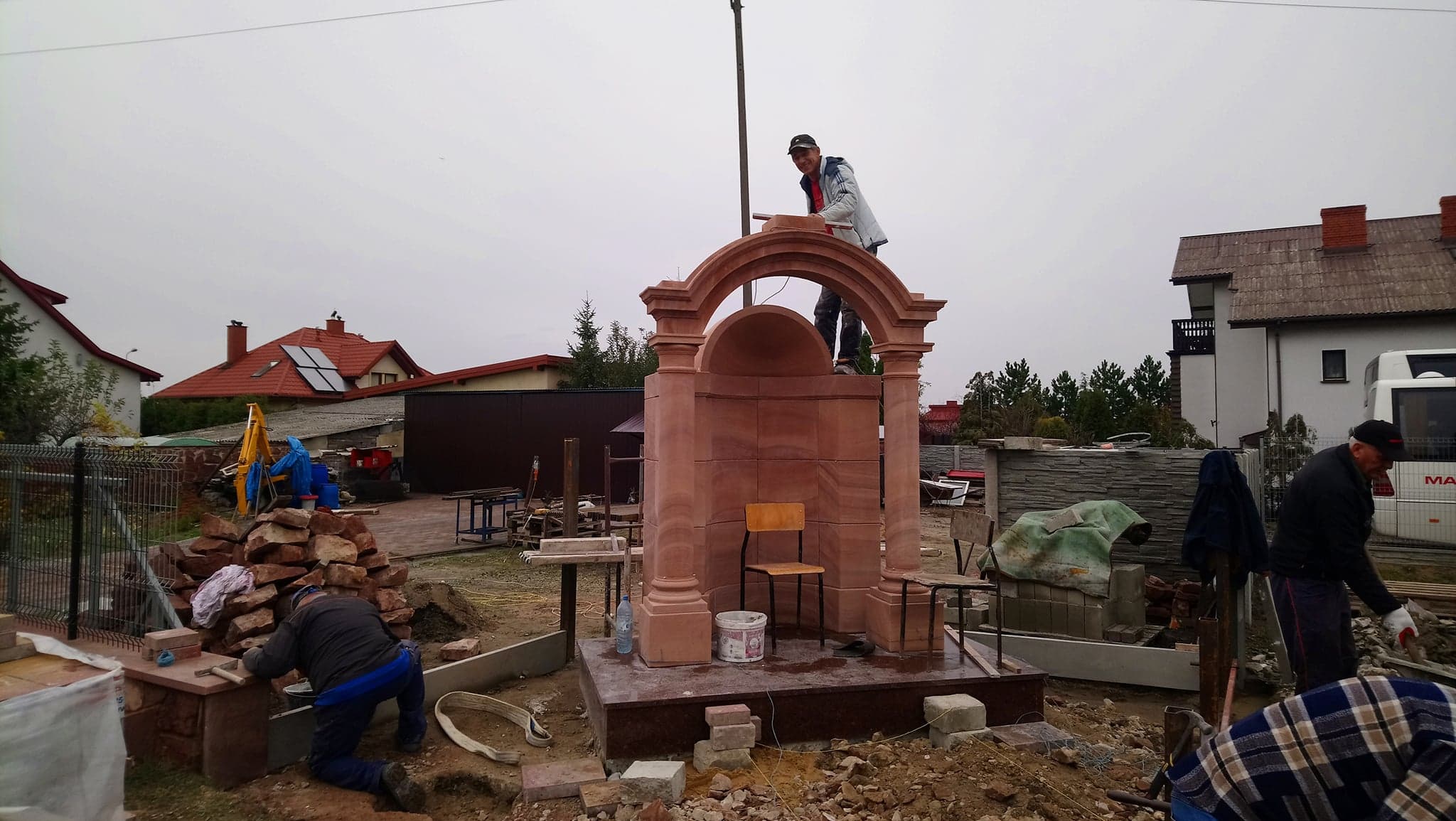 Fundatorami figury są mieszkańcy całego osiedla. Wykonawcą firma KARBUD Pana Sławomira Karpety, natomiast za projekt odpowiedzialny jest Pan Zbigniew Orliński, architekt z Warszawy.