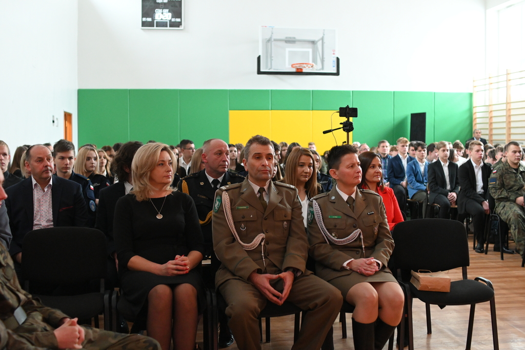Dzień ten był wyjątkowy również dla uczniów klas pierwszych, którzy w obecności starszych kolegów, nauczycieli i zaproszonych gości złożyli uroczyste ślubowanie. Tym samym oficjalnie zostali przyjęci w poczet uczniów Zespołu Szkół. Dyrektor szkoły zwracając się do młodzieży wyraziła nadzieję, że postać patrona będzie inspiracją do umiłowania Ojczyzny, pracy nad sobą, wierności tradycji, a jednocześnie do mądrego patrzenia w przyszłość.