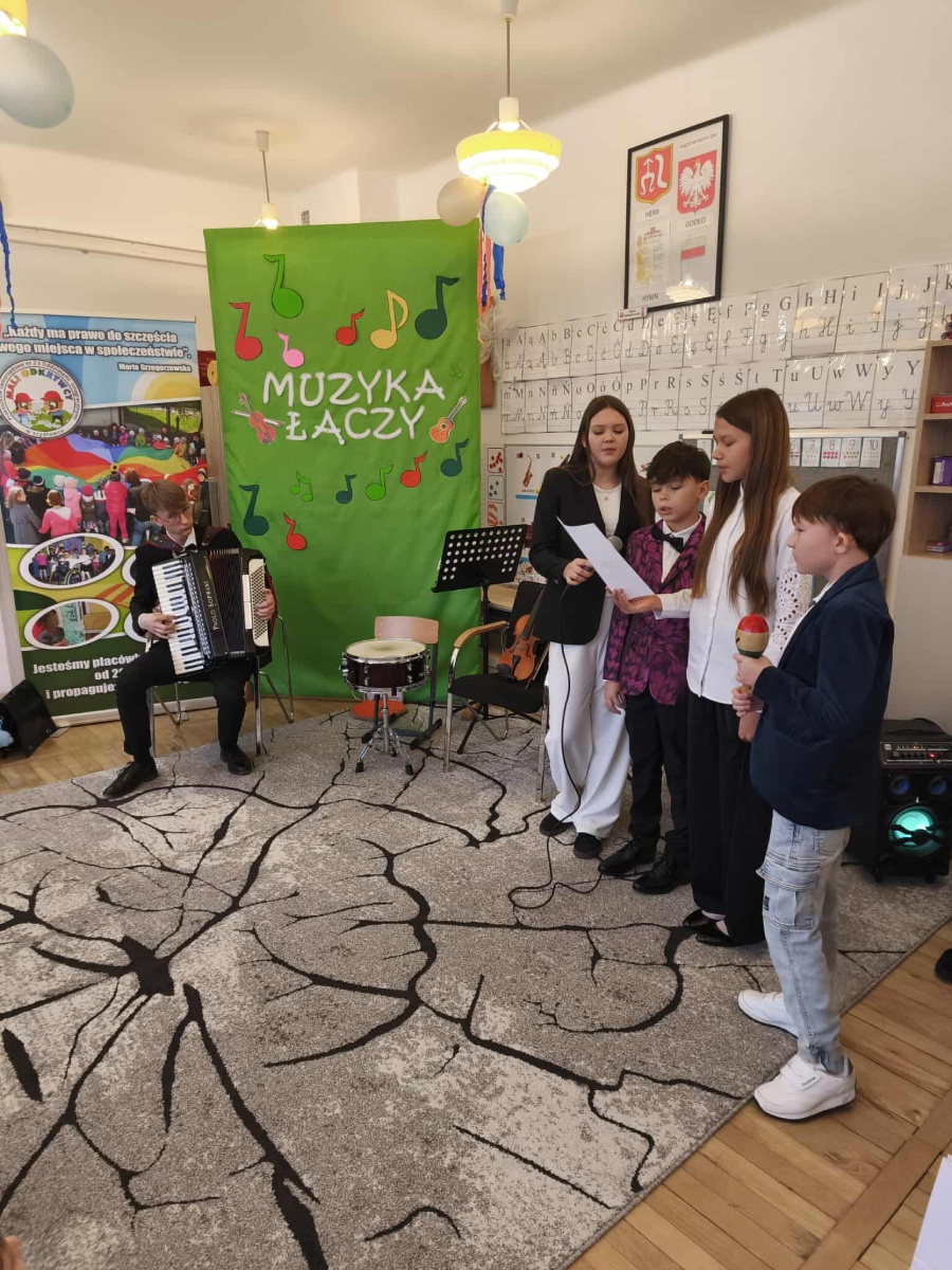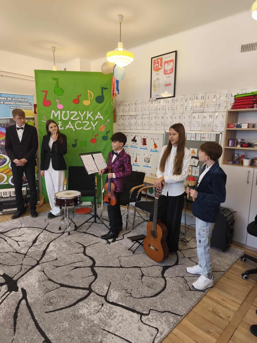 Młodzi muzycy wrócili do przedszkola, by zaprezentować najmłodszym swoje postępy i umiejętności. W programie znalazły się utwory wykonywane na skrzypcach, gitarze, flecie i instrumentach klawiszowych. Przedszkolaki z zainteresowaniem słuchały występów i nagradzały je gromkimi brawami.