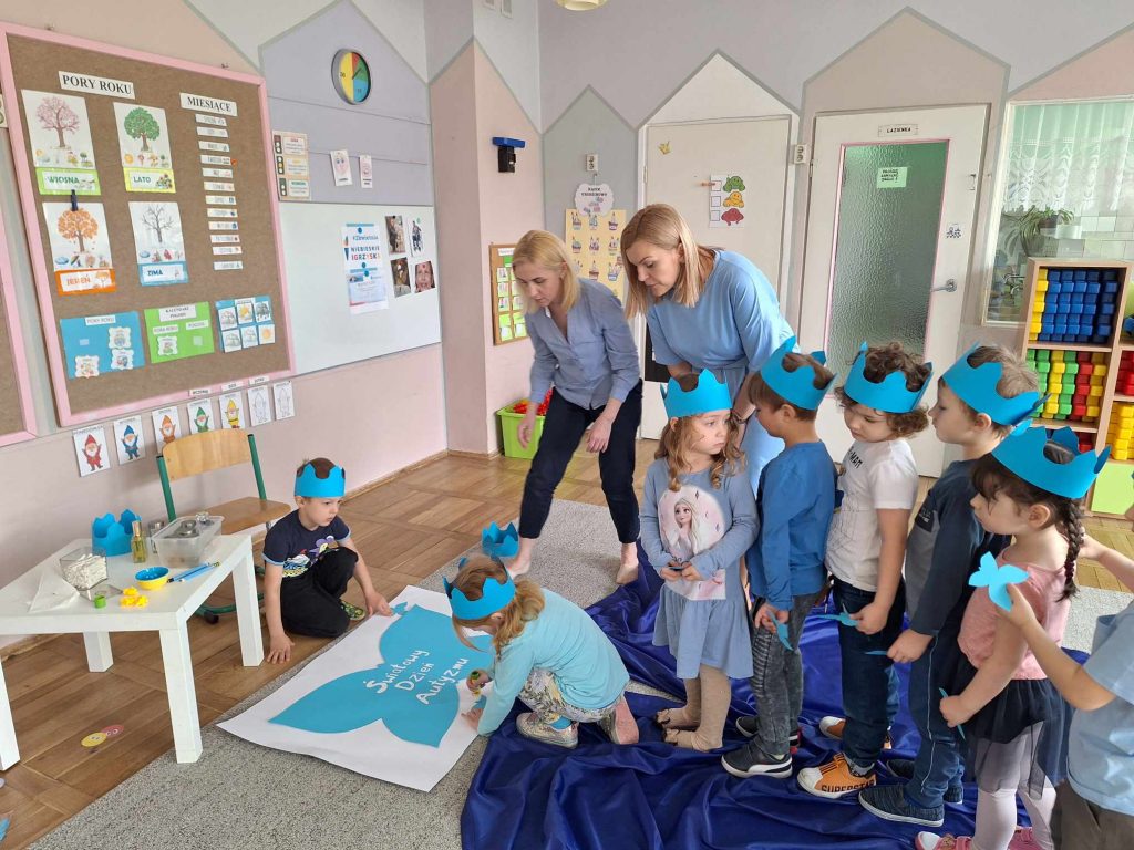 Dzieci w pierwszych tygodniach kwietnia wzięły udział w warsztatach i zajęciach edukacyjnych na temat Autyzmu przeprowadzonych przez psycholog Łucję Chęcińską oraz nauczycieli przedszkola. Obchodom tego dnia towarzyszył kolor niebieski, który dzieci zaprezentowały poprzez swój ubiór. Dzięki zorganizowanym formom edukacyjnym, dzieci dowiedziały się czym jest autyzm oraz w jaki sposób dziecko z autyzmem może postrzegać otoczenie. Nauczyły się także dostrzegać różnice i podobieństwa między sobą poprzez doświadczanie trudności jakie napotykają osoby z autyzmem.