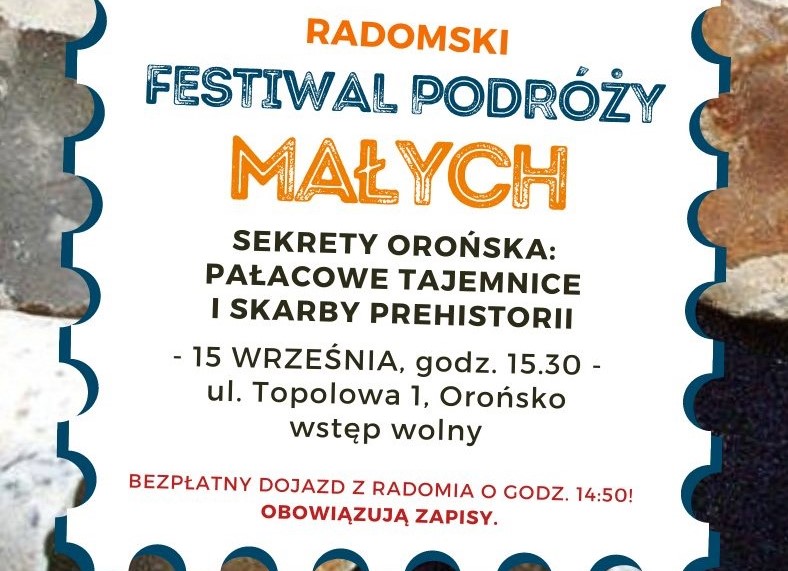 W połowie września rusza kolejna edycja Radomskiego Festiwalu Podróży Małych, a na pierwszy ogień idzie Orońsko! W niedzielę podczas wyjątkowej wycieczki uczestnicy będą mieli okazję poznać skarby tej miejscowości – od prehistorycznego krzemienia czekoladowego po pałac Józefa Brandta