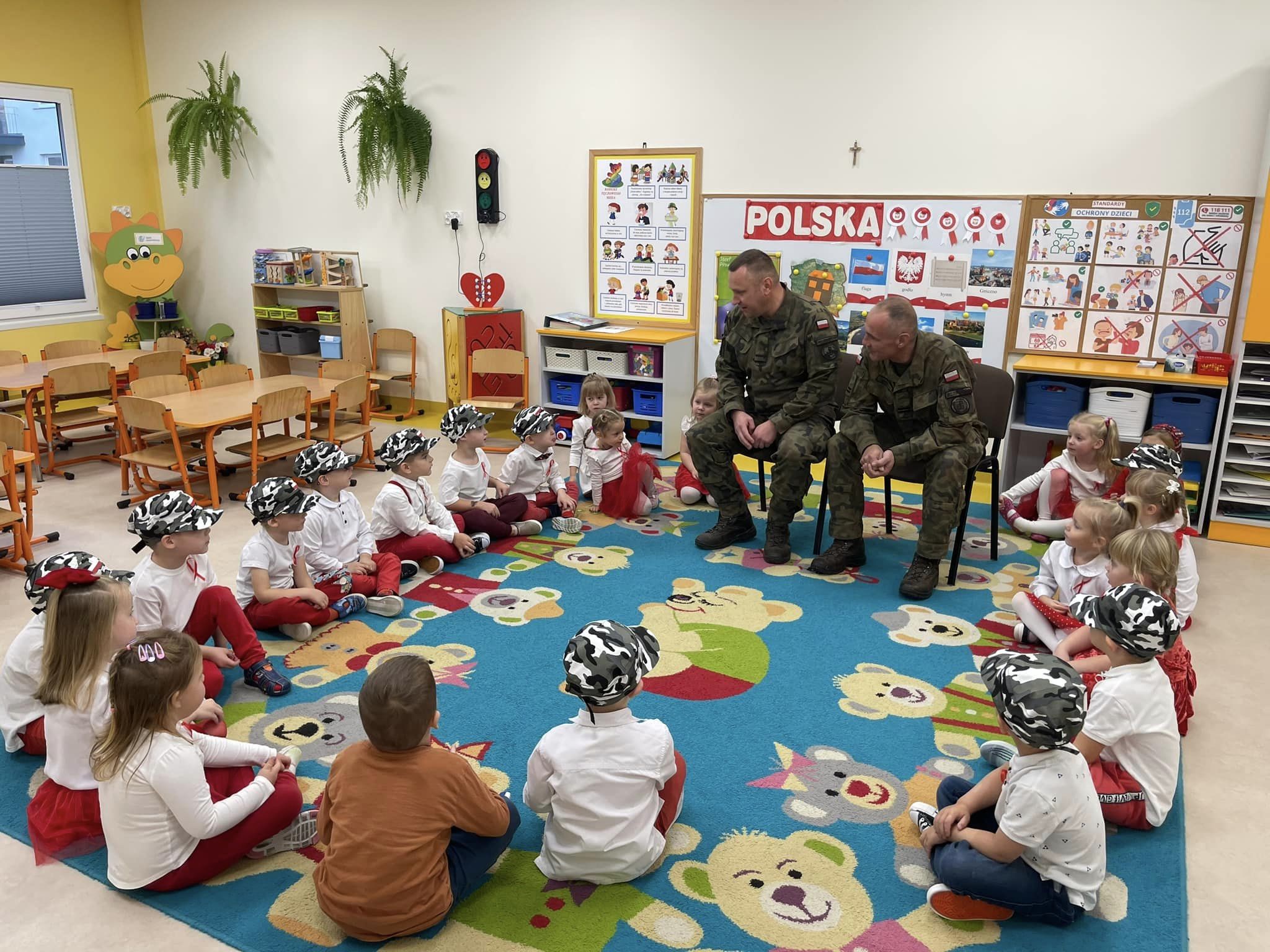 W ramach realizacji preorientacji zawodowej 8 listopada w Przedszkolu Samorządowym nr 1 im. Tęczowego Misia w Szydłowcu żołnierze z 6 Mazowieckiej Brygady Obrony Terytorialnej odwiedzili placówkę przed Rocznicą Odzyskania Niepodległości przez Polskę.