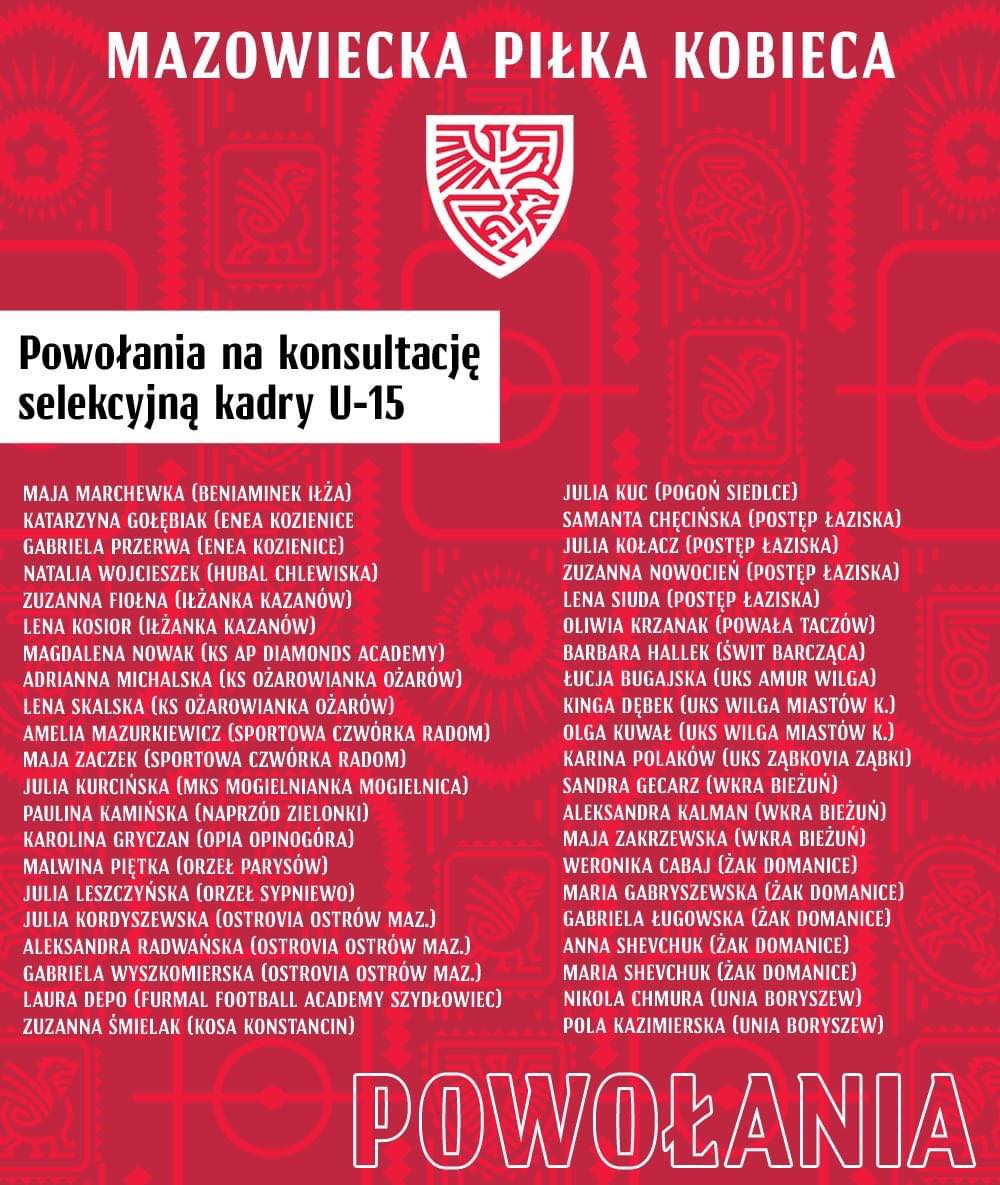 Zawodniczki z powiatu szydłowieckiego otrzymały powołanie na konsultację selekcyjną kadry Mazowsza zorganizowaną przez Mazowiecki Związek Piłki Nożnej. Konsultacja odbędzie się 5 listopada na obiektach „Legii Warszawa”.
