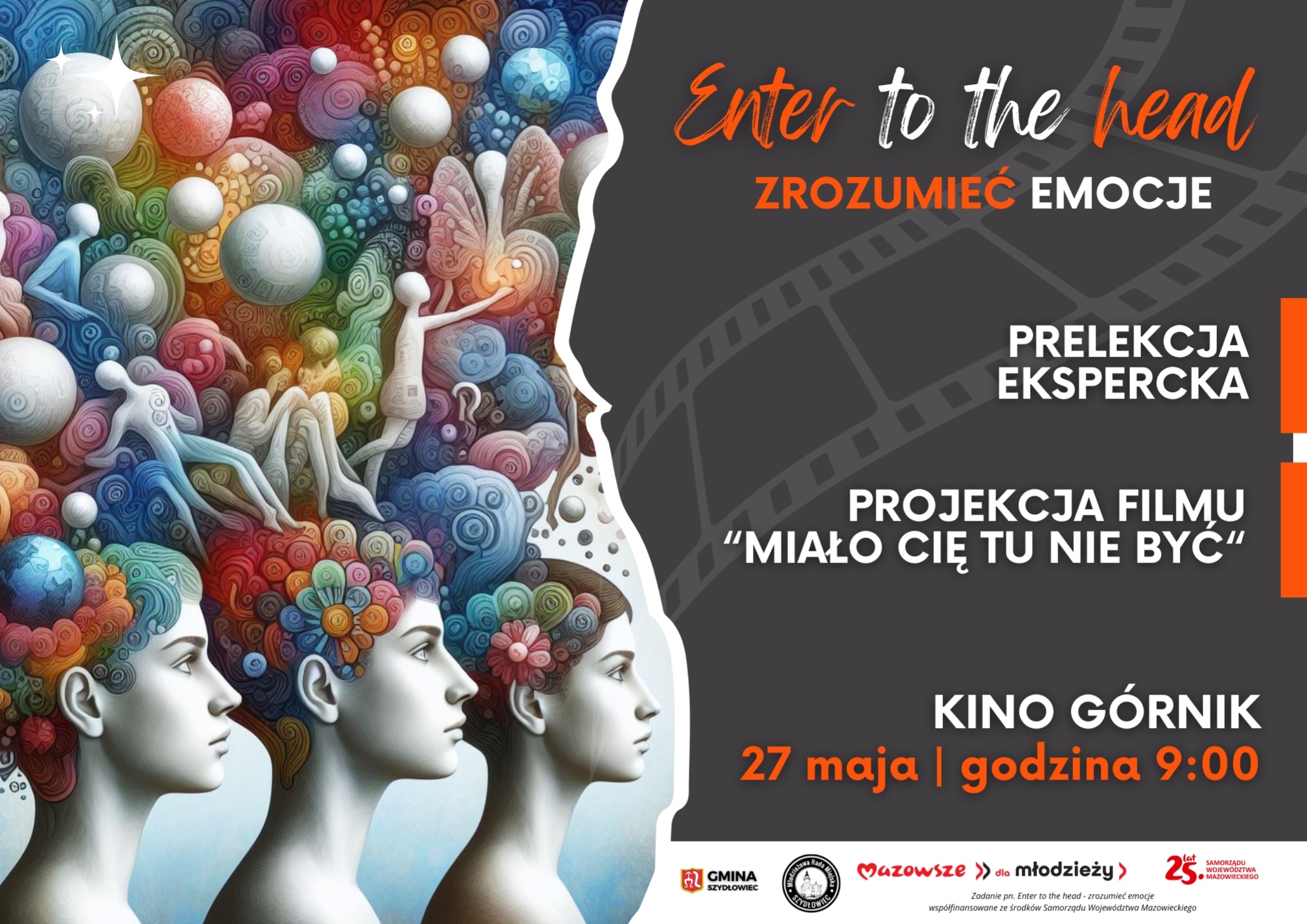 W poniedziałek 27 maja Młodzieżowa Rada Miejska organizuje w szydłowieckim kinie „Górnik” wydarzenie podsumowujące projekt „Enter to the head – zrozumieć emocje”.