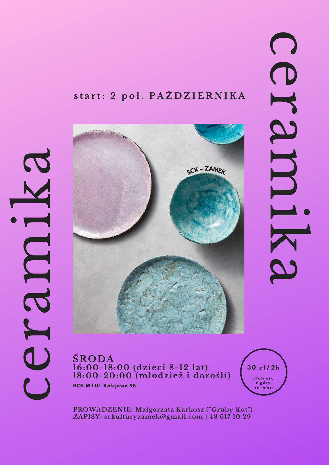 Zapisy: sckulturyzamek@gmail.com Informacje: 617 10 29 wew. 106