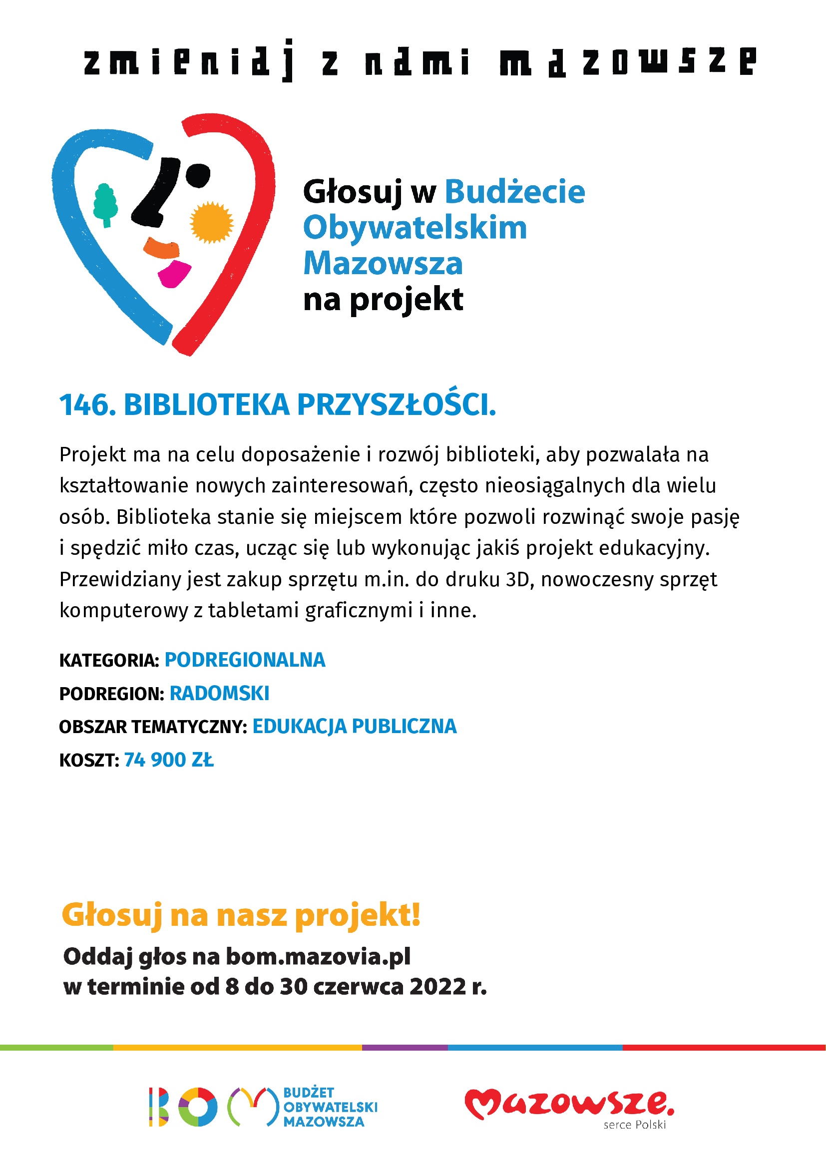 PROJEKT NR 146: Biblioteka przyszłości, złożony przez Bibliotekę Pedagogiczną w Szydłowcu