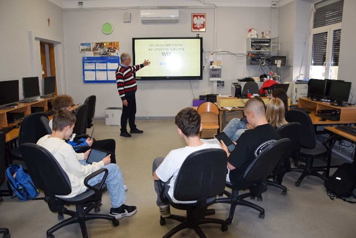 Na lekcji informatyki tablety wykorzystywane sią na wiele sposobów, jednym z nich jest tworzenie i zarządzanie treścią wykorzystując dostępne w sieci aplikacje. Uczniowie klas pierwszych przy użyciu osobistych tabletów i aplikacji WIX pobranej ze strony pl.wix.com samodzielnie tworzyli strony internetowe w chmurze. Pierwszoklasiści zapoznali się z możliwościami, jakie oferuje aplikacja i stawiali pierwsze kroki w tworzeniu stron internetowych.
