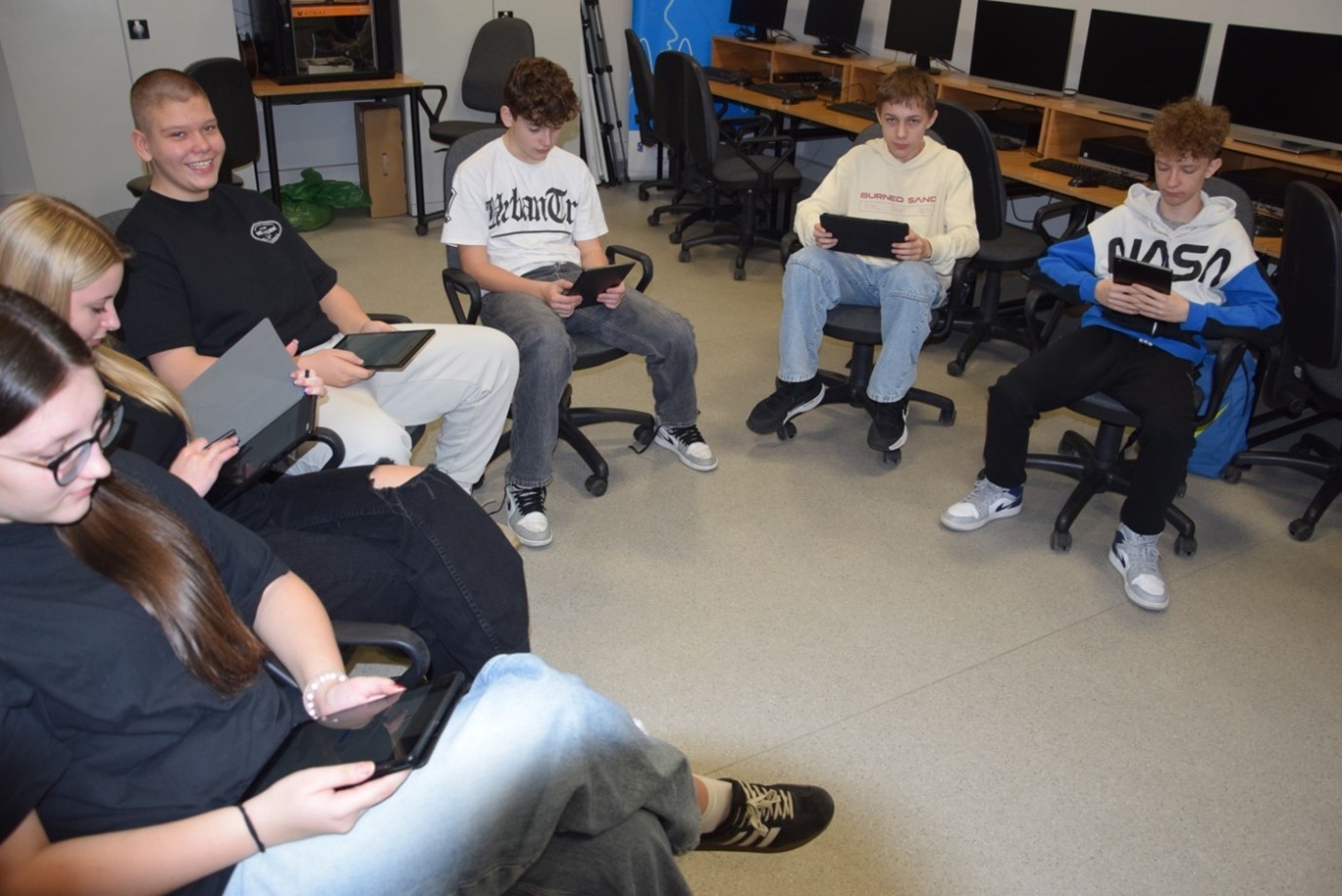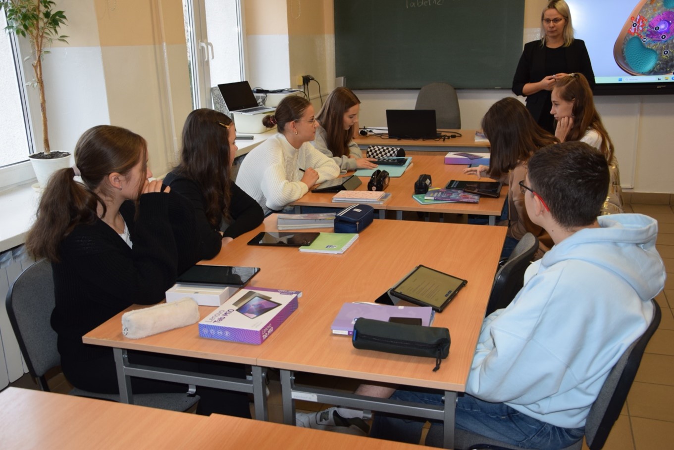 Tablety w szydłowieckim „Sienkiewiczu” służą również jako alternatywa dla zeszytów i dają możliwość wspólnej pracy uczniów w grupach. Na lekcjach biologii pierwszoklasiści wykorzystują tablety, by tworzyć na nich dokumenty tekstowe – notatki podsumowujące dział, które następnie udostępniają sobie nawzajem.