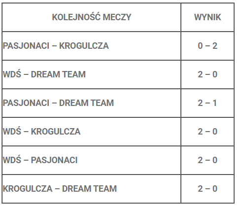 Skład zwycięskiej drużyny: Dubiński Adrian, Dubiński Mateusz, Kramarski Dawid, Stachyra Paweł (kpt), Szczygłowski Tomasz, Szcześniak Patryk, Wlazło Dominik, Wiederek Kacper.