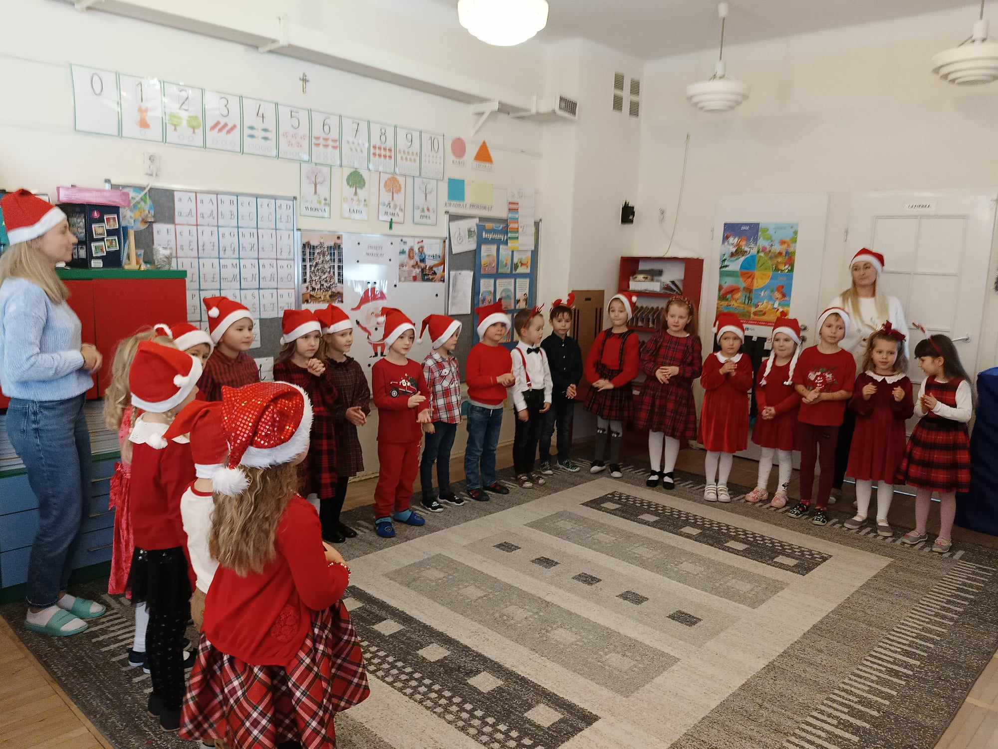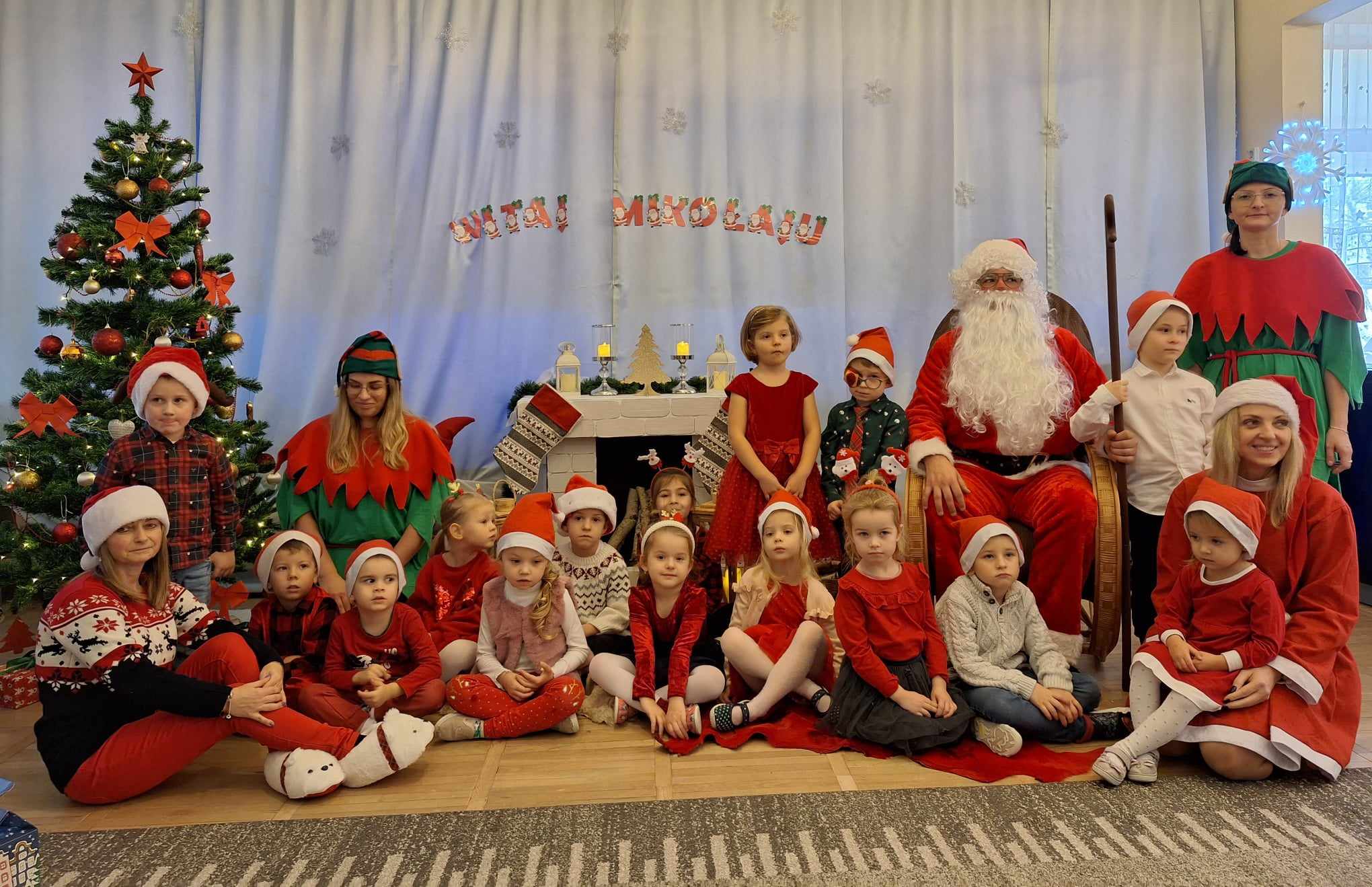 Pojawił się tuż po śniadaniu. Swoją obecność oznajmił dźwiękiem dzwonków. Dzieci z poszczególnych grup długo przygotowywały się do wizyty tak wspaniałego gościa. Zaśpiewały mu piosenkę przygotowaną specjalnie na tę wyjątkową okazję. Mikołaj z pomocą Elfów wszystkich obdarował podarunkami.