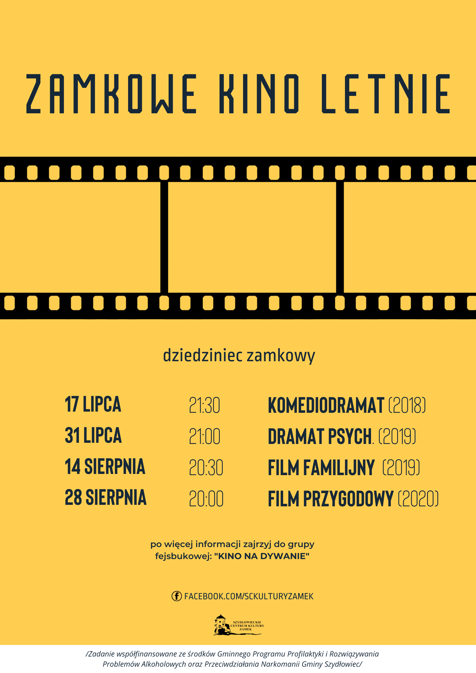 Szydłowieckie Centrum Kultury – Zamek zaprasza każdego na seanse filmowe z cyklu „Zamkowe Kino Letnie”.