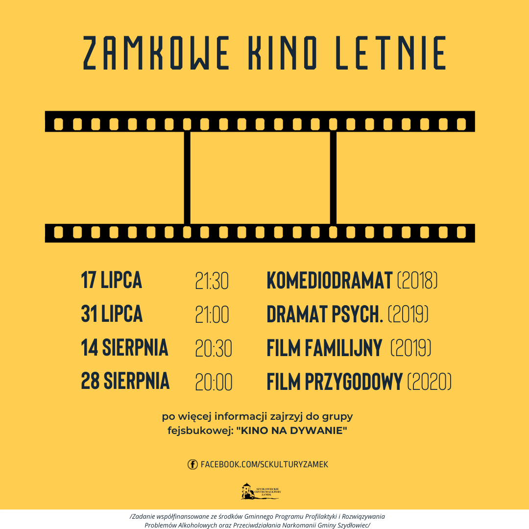 Szydłowieckie Centrum Kultury – Zamek zaprasza każdego na seanse filmowe z cyklu „Zamkowe Kino Letnie”.