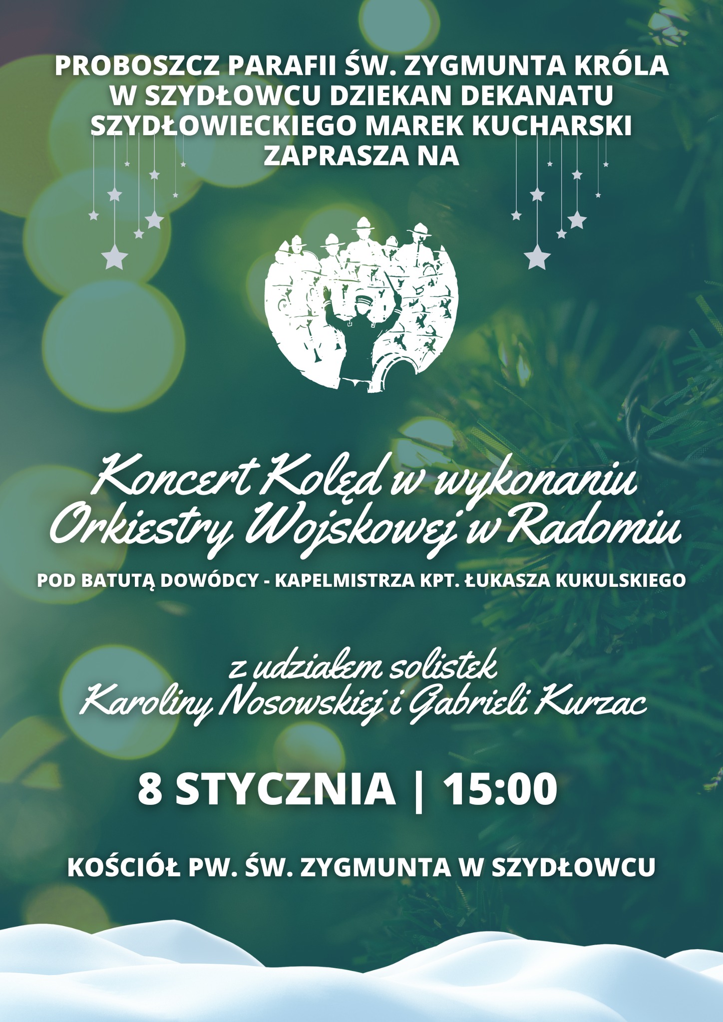 ks. Marek Kucharski, dziekan dekanatu szydłowieckiego, proboszcz Parafii św. Zygmunta w Szydłowcu serdecznie zaprasza na koncert kolęd do szydłowieckiej fary.