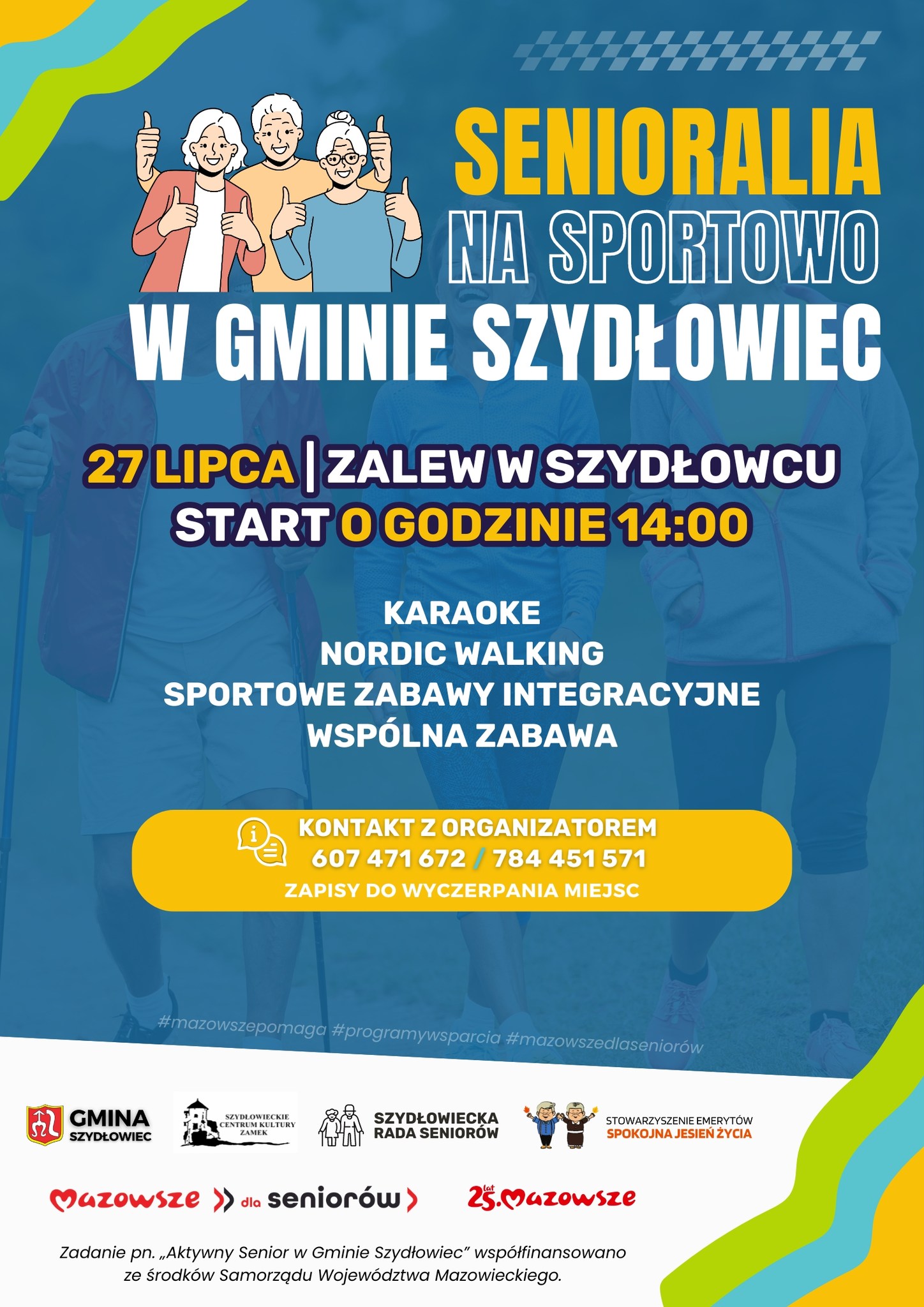 Zadanie pn. „Aktywny Senior w Gminie Szydłowiec” współfinansowano ze środków Samorządu Województwa Mazowieckiego.