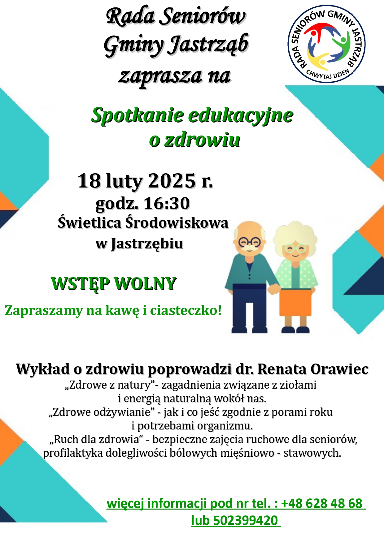 Rada Seniorów Gminy Jastrząb zaprasza na spotkanie edukacyjne o zdrowiu.