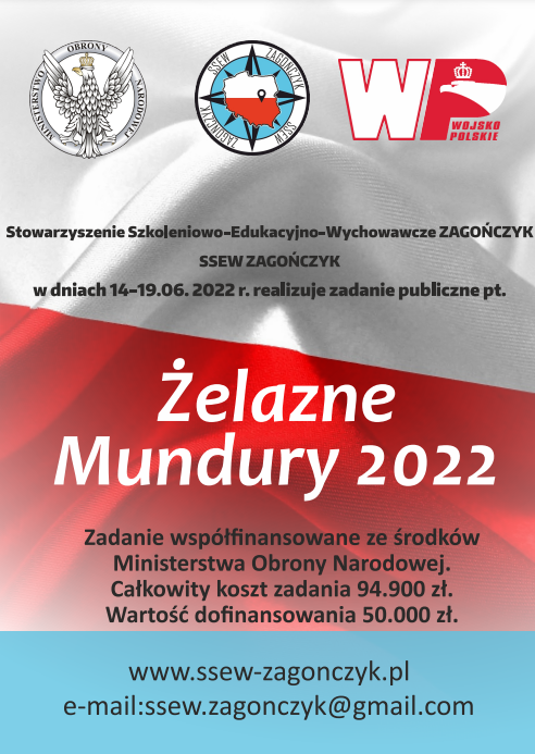 14-19.06.2022 r. na terenie miasta Szydłowiec oraz wsi Barak będzie realizowało zadanie współfinansowane ze środków Ministerstwa Obrony Narodowej pt. Żelazne Mundury 2022.
