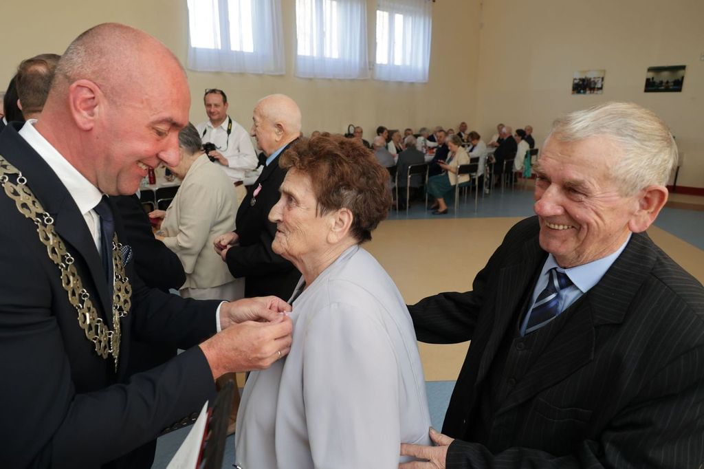 Uroczystego aktu dekoracji dokonał Wójt Gminy Chlewiska P. Albert Kijak – podkreślając znaczenie tego pięknego jubileuszu , nazywając go symbolem wytrwałości, miłości i wzajemnego szacunku, wyraził wdzięczność za przykład, jaki jubilaci dają młodszym pokoleniom.